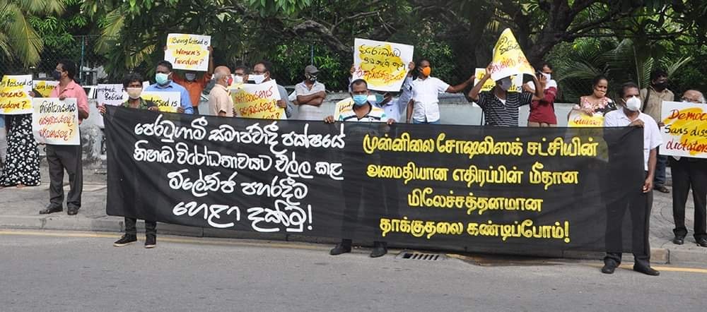 එක්සත් ජනපද පොලිසිය විසින් ජෝර්ජ් ෆ්ලොයිඩ් ඝාතනය කිරීමට විරෝධය පළ කරනු පිණිස, ජුනි මස 9 වැනිදා පෙරටුගාමී සමාජවාදී පක්ෂය පැවැත්වූ උද්ඝෝෂණයට ආණ්ඩුව පොලිසිය යොදා එල්ල කළ ම්ලේච්ඡ ප්රහාරයට විරෝධය පළ කරමින්, නිහඬ විරෝධතාවයක් ඊයේ (16) කොළඹ, ලිප්ටන් වටරවුමේදී පැවැත්විණි.