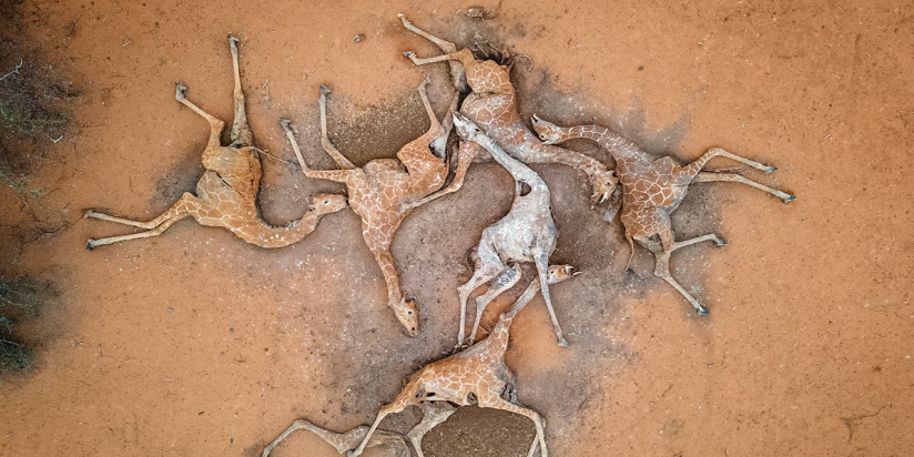 මෙම ඡායාරූපයෙන් දැක්වෙන්නේ අප්රිකාවේ හෝං (Horn) ප්රදේශයේ අඛණ්ඩව පවතින දැඩි නියඟය නිසා මියගොස් සිටින ජිරාෆ් සතුන් කිහිපදෙනෙකුයි. මෙම ඡායාරූපය ගෙන තිබෙන්නේ සබුලි නම් කෙන්යානු වනෝද්යානයකදීයි.