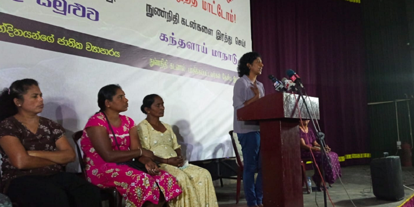 “ක්ෂුද්ර මූල්ය වින්දිතයන්ගේ ප්රශ්නේ ආණ්ඩුවට ඇහෙන්න පටන් අරන්. ඒ නිසා ක්ෂුද්ර මූල්ය ණය වින්දිත්යනගේ පළමු සමුළුව කැඳවන වෙලාවේ ජයග්රහණය කරලා තියෙන්නේ. තව අපිට යන්න තියෙන්නේ ටික දුරයි. හදිසියේ ෂෙහාන් සේමසිංහට මතක් වෙලා ක්ෂුද්ර මූල්ය ගැන කතා කරන්න. අවුරුදු ගණනක් අපි ප්රශ්නේ ගැන කිව්වා. අපි එක දිගට කිව්වා මේ ක්ෂුද්ර මූල්ය ණය තවදුරටත් අපිට ගෙවන්න බැහැ කියලා. ඒ නිසා මේක කපා හරින්න කිව්වා. කන් ඇහුනේ නැහැ. හැබැයි අපේ ප්රභලම අවිය අපි අතට ගත්ත වෙලාවේ අපි සංවිධානය වෙනවා කියලා උන්ට දැනිච්ච් වෙලාවේ ප්රකාශ නිකුත් කරන්න පටන් අරන්. දැන් කියනවා ක්ෂුද්ර මූල්ය නියාමන අධිකාරියක් දෙනවා. ඒක ඇතුලේ මේ ණය කපා හරින්න, මේකේ නිත්යානුකුල කටයුතු ටික පටන් ගන්නවා කියලා අපහු කියනවා.
