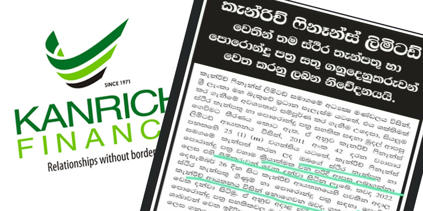 මේ මොහොතේ ශ්රී ලංකාව පත්වී තිබෙන මුල්ය අර්බුදය පිළිබඳව අනතුරු ඇඟවීමක් ලෙස ගත හැකියි උදාහරණයක් මතුවී තියනවා . 2023 වසරේ අපි මුහුණ දෙන මූල්ය අර්බුදයේ කසකරු ලෙස ඉදිරියට පැමිණෙමින් ඉන්නේ කැන්රිච් ෆිනෑන්ස් ලිමිටඩ් සමාගමද? සැක සහිතව විමසා බැලීමේ වරදක් නැහැ. කැන්රිච් ෆිනෑන්ස් ලිමිටඩ් ආයතනය මීට දින කිහිපයකට ඉහත සමාජ මාධ්ය වෙත පත්රිකාවක් මුදාහරිනවා. ඉන් කියැවෙන්නේ ඔවුන් යටතේ තැන්පත් කර ඇති තැන්පත් මුදල් වහාම නැවත ලබා ගන්නා ලෙසයි. එම පත්රිකාවේ වැඩිදුරටත් සඳහන් කර තිබෙන්නේ තැන්පත් මුදල් සඳහා ලබාදෙන්නට පොරොන්දු වූ පොලී මුදල් ලබා නොදෙන බවයි.
